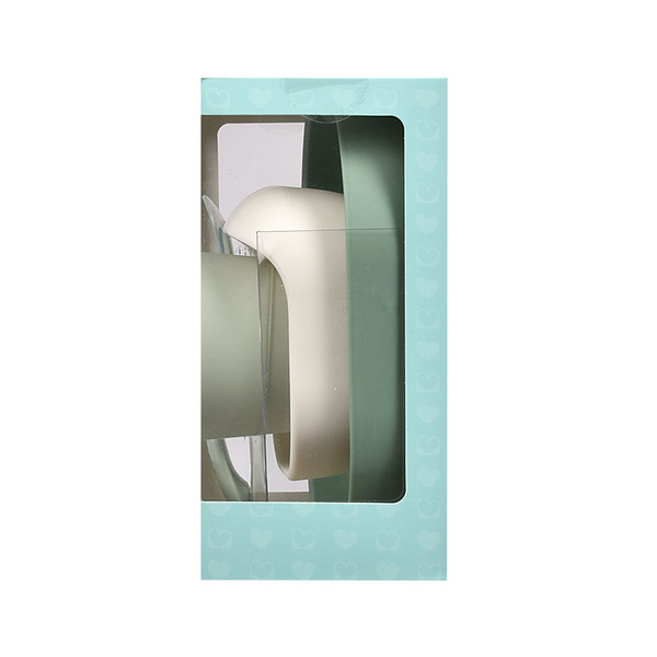 Zestaw utrzymany jest w pastelowych kolorach: talerzyk jest w kolorze szałwiowej zieleni, miseczka kremowa, a kubeczek i łyżeczka – jasnozielone. Naczynia można myć ręcznie i w zmywarce, a także podgrzewać w mikrofalówce.