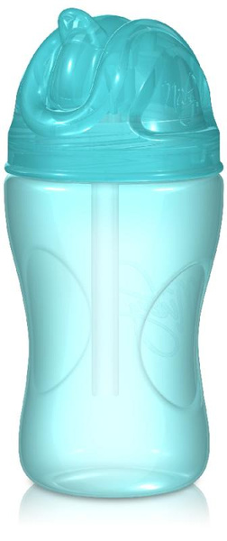 Firma Nuby opracowała miękki, silikonowy ustnik z rurką. Picie z bidonu jest łatwe i umożliwia naturalny rozwój podniebienia miękkiego i ząbków dziecka.