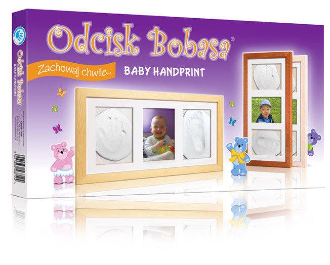 Potrójna ramka z glinką pozwala na bardzo szybkie i niezwykle proste wykonanie pamiątkowego odcisku np. rączki, nawet u bardzo małych dzieci.
