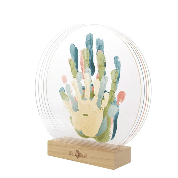 Ramka na odciski dłoni to wyjątkowy sposób na uwiecznienie odcisków pięciu członków rodziny, tworząc niepowtarzalne dzieło sztuki. Każdy członek rodziny może pozostawić swój odcisk na osobnym, przezroczystym panelu akrylowym, a następnie połączyć je w kolorową, przestrzenną kompozycję. W zestawie znajduje się 5 przezroczystych paneli, elegancka drewniana podstawa, 5 tubek z farbami, wałek do aplikacji oraz instrukcja, dzięki której łatwo stworzysz odciski. Ramka na odciski dłoni to nowoczesny sposób na wyrażenie więzi rodzinnych i miłości, jednocześnie tworząc piękną dekorację do wnętrz.
