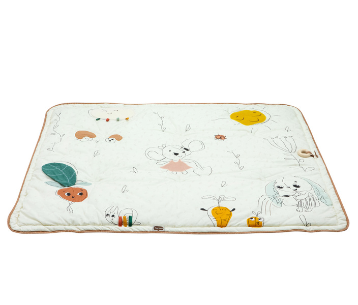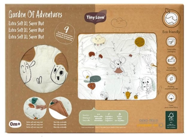 Mięciutka mata z kolekcji Garden of Adventure oferuje miejsce do motorycznych i sensorycznych doświadczeń dziecka leżącego na pleckach, brzuszku lub podczas turlania. Stymulowanie różnych zmysłów pozwala na ćwiczenie koordynacji, równowagi i postawy oraz uczy niemowlę kontroli ruchów swojego ciała.