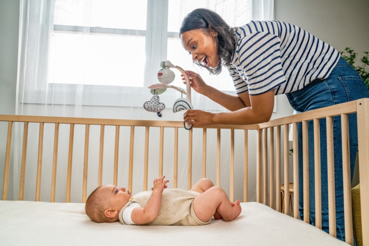 Przymocuj karuzelę podróżną do wózka, łóżeczka czy kołyski, aby wspierać rozwój swojego dziecka jednocześnie zapewniając mu zabawę – ze stylem!