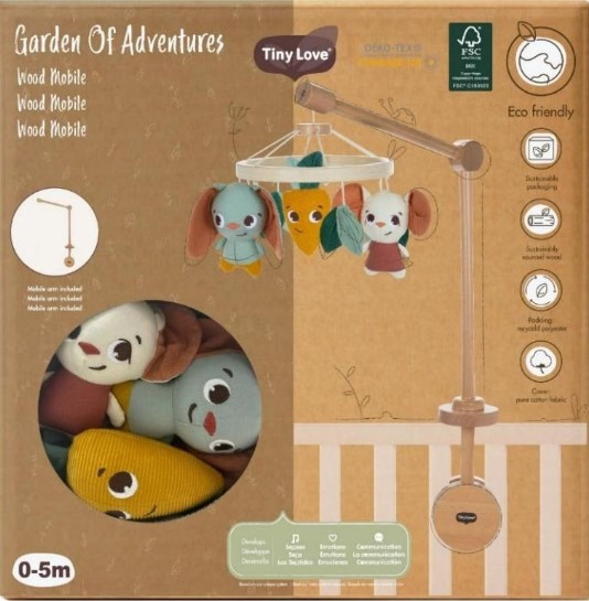 Karuzela uspokaja dziecko dzięki naturalnym ruchom i spokojnym, ciepłym kolorom, które urozmaicą wygląd łóżeczka. Postacie obracają się nad głową dziecka naturalnym i kojącym ruchem. Całość została wykonana z naturalnych materiałów, przyjaznych dla środowiska, które spełniają standardy zrównoważonego rozwoju.