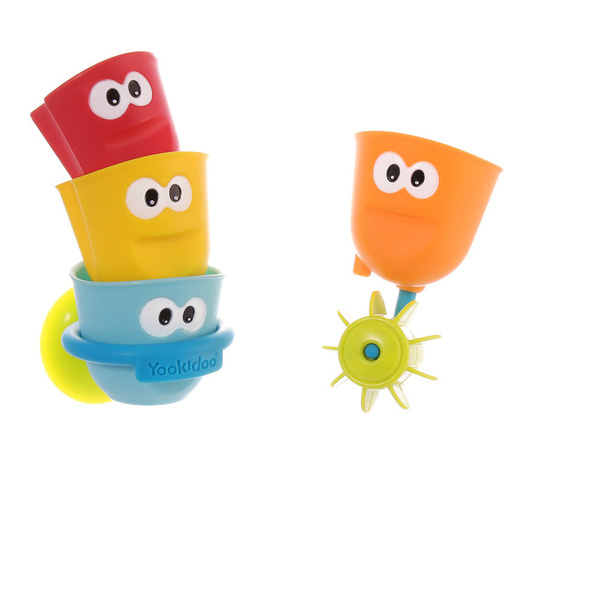 Każdy kubeczek w zestawie Yookidoo posiada unikalne cechy i umożliwia różne efekty wodne.
