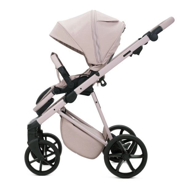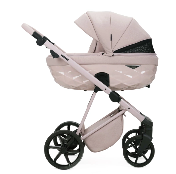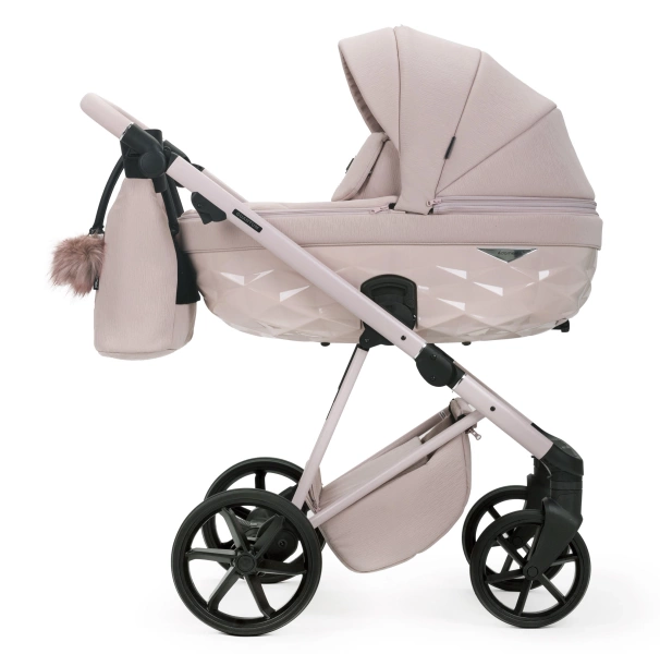 Kolekcja Quantum Natura wyróżnia się precyzyjnie dobranym kolorem stelaża i dodatków, które idealnie współgrają z zastosowaną tkaniną oraz kolorem trójwymiarowej misy gondoli, co sprawia że wózek prezentuje się wyjątkowo efektownie. Kolekcja jest spójna, estetyczna oraz inspirowana subtelnymi kolorami natury.