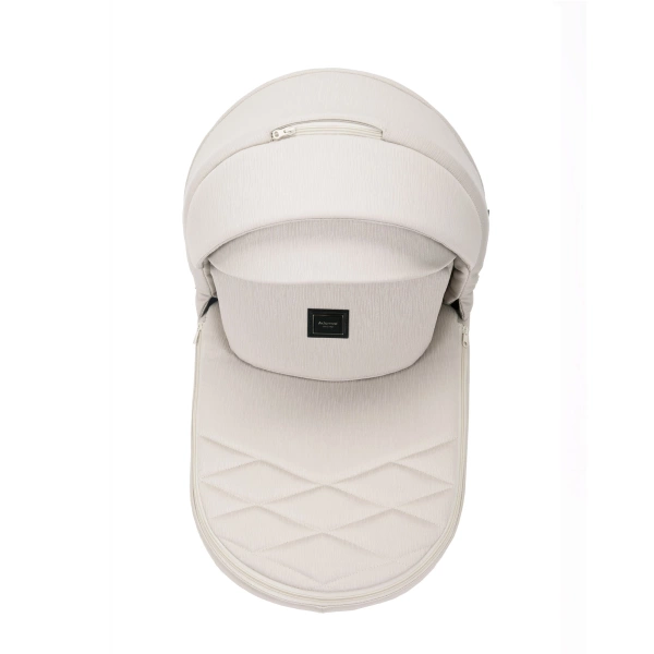 W obszernej gondoli znajduje się przewiewny materacyk kokosowy przyjazny dla środowiska i bezpieczny dla dziecka oraz pikowana, elegancka, bawełniana wyściółka