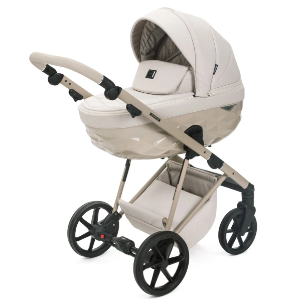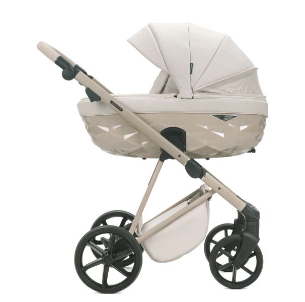 Kolekcja Quantum Natura wyróżnia się precyzyjnie dobranym kolorem stelaża i dodatków, które idealnie współgrają z zastosowaną tkaniną oraz kolorem trójwymiarowej misy gondoli, co sprawia że wózek prezentuje się wyjątkowo efektownie. Kolekcja jest spójna, estetyczna oraz inspirowana subtelnymi kolorami natury.