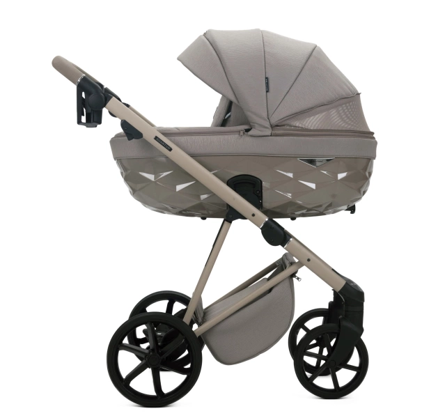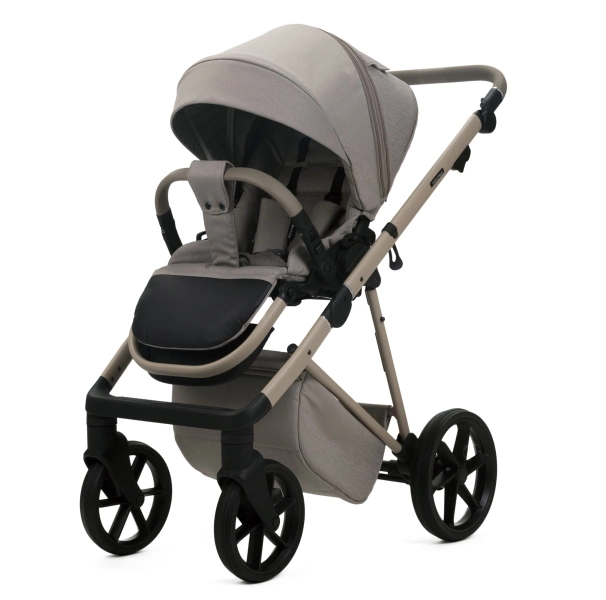 Kolekcja Quantum Natura wyróżnia się precyzyjnie dobranym kolorem stelaża i dodatków, które idealnie współgrają z zastosowaną tkaniną oraz kolorem trójwymiarowej misy gondoli, co sprawia że wózek prezentuje się wyjątkowo efektownie. Kolekcja jest spójna, estetyczna oraz inspirowana subtelnymi kolorami natury.