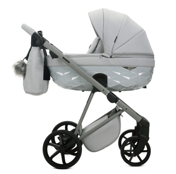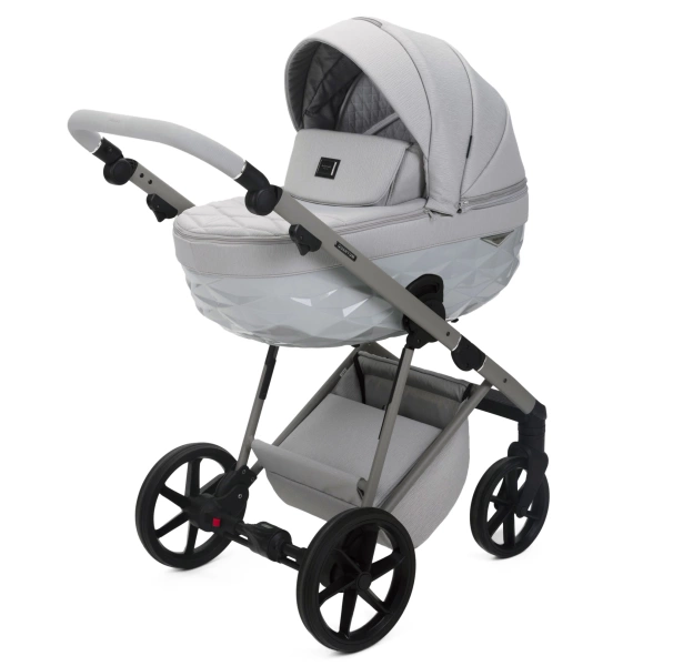 Kolekcja Quantum Natura wyróżnia się precyzyjnie dobranym kolorem stelaża i dodatków, które idealnie współgrają z zastosowaną tkaniną oraz kolorem trójwymiarowej misy gondoli, co sprawia że wózek prezentuje się wyjątkowo efektownie. Kolekcja jest spójna, estetyczna oraz inspirowana subtelnymi kolorami natury.