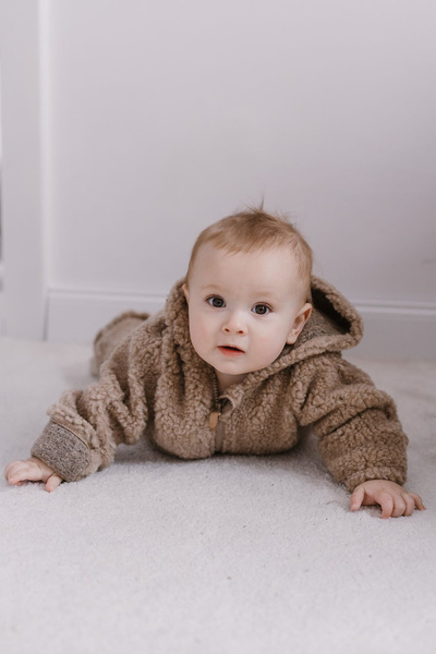 Cechy: •naturalna owcza wełna •miękki, oddychający i termoaktywny materiał – idealny na jesień, zimę i wczesną wiosnę •praktyczne zakładki na dłonie i stopy w rozmiarach 50/56, 62/68, 74/80 •bezpieczny zamek z dodatkową zakładką ochronną przy szyi •uroczy, puszysty pompon w kapturku •prosty, funkcjonalny krój, który nie krępuje ruchów dziecka •neutralny, ponadczasowy styl – pasuje zarówno dla chłopców, jak i dziewczynek