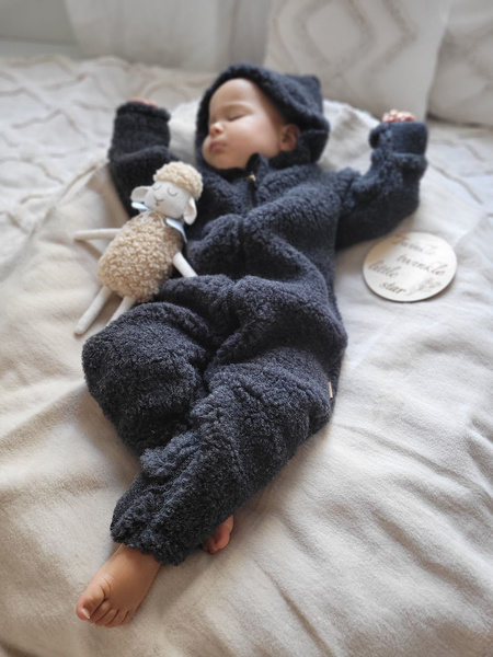 Cechy: •naturalna owcza wełna •miękki, oddychający i termoaktywny materiał – idealny na jesień, zimę i wczesną wiosnę •praktyczne zakładki na dłonie i stopy w rozmiarach 50/56, 62/68, 74/80 •bezpieczny zamek z dodatkową zakładką ochronną przy szyi •uroczy, puszysty pompon w kapturku •prosty, funkcjonalny krój, który nie krępuje ruchów dziecka •neutralny, ponadczasowy styl – pasuje zarówno dla chłopców, jak i dziewczynek