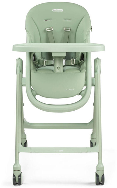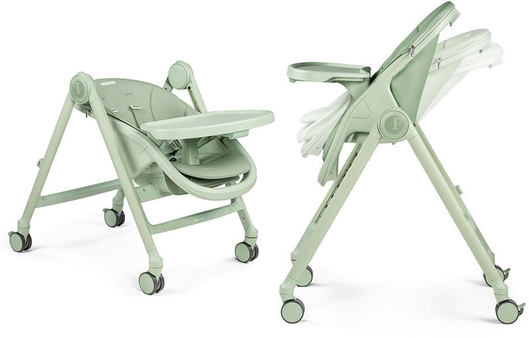 Krzesełko Living Peg Perego wyposażono w innowacyjny system składania z przyciskami umieszczonymi po bokach. Po złożeniu krzesełko jest bardzo kompaktowe i może stać w pozycji pionowej nawet z wpiętą tacką, co ułatwia jego przechowywanie.