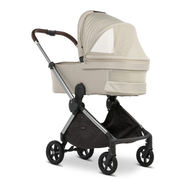 Zawiera składaną gondolę z oddychającym materacem memory oraz przekładane siedzisko spacerowe z pełną regulacją i budką XXL.