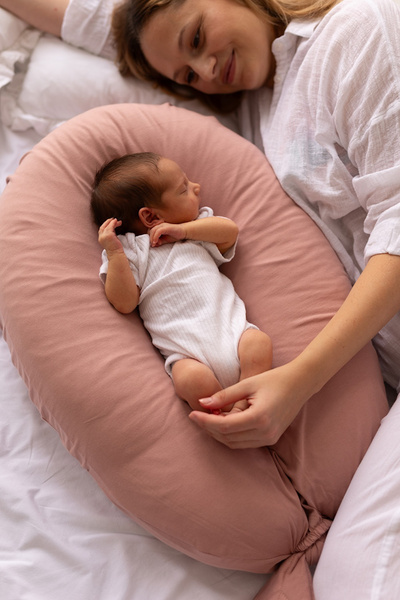 Poduszka uniwersalna NEST to przemyślane kombo: poduszka dla kobiet w ciąży, poduszka do karmienia, leżaczek niemowlęcy i prześcieradło do gondoli.