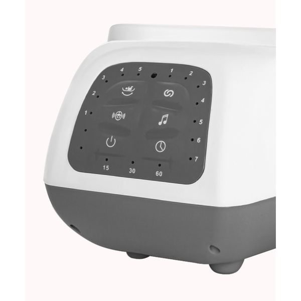 W skład zestawu wchodzi także elektroniczna karuzela z wieloma funkcjami: trzy obrotowe, zdejmowane zawieszki – zabawki lampka nocna z projektorem z trzema trybami podświetlenia dwa tryby wibracji Zasilanie: 2 × AAA (brak w zestawie)