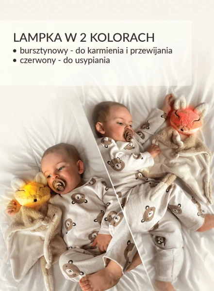 - 3 szumy z czujnikiem snu: biały, brązowy (szum deszczu) i różowy (szum z brzuszka mamy)