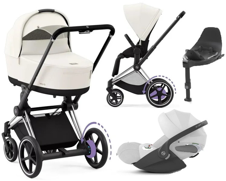Cybex e-Priam 4.0 Wózek Głęboko-Spacerowy + Cloud T I-Size Fotelik + Baza Off White
