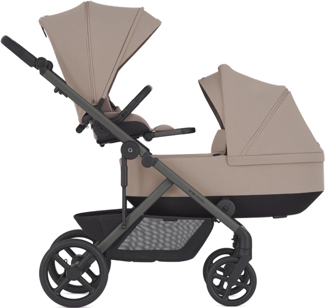 Wózek waży jedynie ok. 11,5 kg z jednym siedziskiem, dzięki czemu bez problemu wniesiesz go po schodach, przeniesiesz do bagażnika czy włożysz do windy. Modu prowadzi się płynnie i stabilnie, a możliwość zmiany konfiguracji na tej samej ramie daje poczucie, że to inwestycja na lata - gdy pojawi się drugie dziecko, nie musisz kupować nowego wózka.