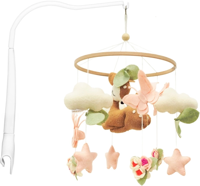 Karuzela Neno Rosi to ręcznie robiona ozdoba z uroczymi sarenkami i motylkami, która wprowadza do pokoju dziecka ciepło i harmonię natury. Delikatnie poruszające się zawieszki stymulują rozwój wzroku i motoryki malucha, zachęcając do obserwacji i pierwszych ruchów rączek. Dzięki łatwemu montażowi karuzelę można szybko i bezpiecznie przymocować do większości łóżeczek