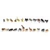mniejsze figurki: koń, osioł, świnia, krowa, owca, pies, kot, zając, kura, kaczka, byk, koza górska, 2 lwy, żyrafa, słoń, zebra, goryl, niedźwiedź polarny, tygrys, hipopotam, nosorożec, lwica, kangur