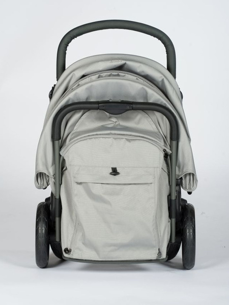 Wózek M.2x posiada system składania i rozkładania jedną ręką, a po złożeniu stoi samodzielnie.
