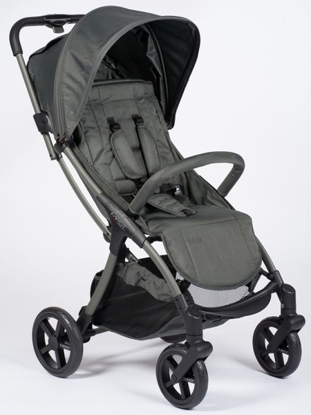 Dobrze wyściełane siedzisko ma łatwo rozkładane oparcie, a podnóżek można regulować w dwóch pozycjach. Możesz regulować oparcie w trzech różnych pozycjach jedną ręką. Pozycja siedząca jest całkowicie pionowa, aby zapewnić dziecku swobodę ruchów.