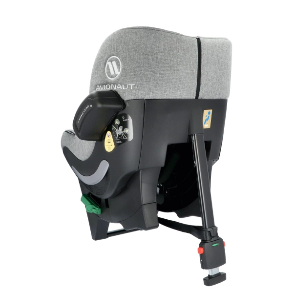 Jak zamontować fotelik Avionaut Sky Q w samochodzie? Fotelik montowany jest za pomocą 3-punktowych pasów bezpieczeństwa i nogi stabilizującej, która jest częścią konstrukcji fotelika.