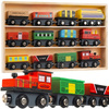 SPECYFIKACJA – materiał: drewno, pozostałe: żelazo + PE + magnes; 3 lokomotywy; 9 wagonów; w zestawie organizer / półka; wymiary całego zestawu z organizerem: 33 x 20 x 3 cm; waga kolejki 0,662 kg; waga w opakowaniu: 0,974 kg.