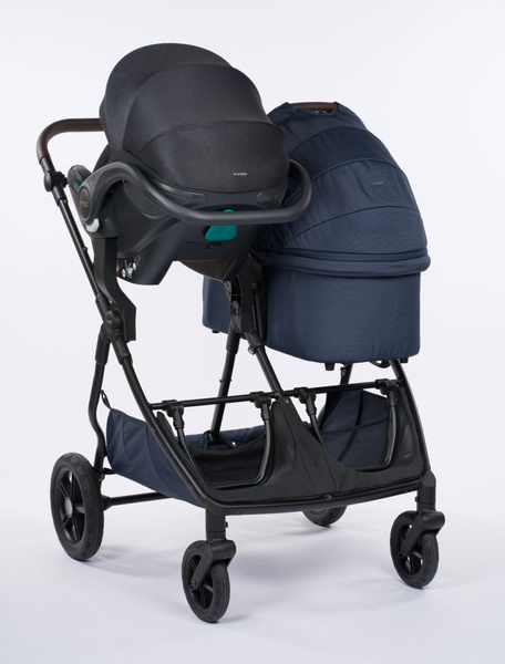 - Możliwość ustawienia dwóch gondoli, dwóch fotelików lub dwóch siedzisk.