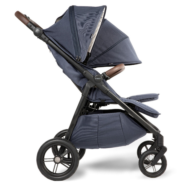 - Regulowany podnóżek w czterech pozycjach oraz siedziska ustawiane w pozycji leżącej do 170° – idealne do drzemki podczas spaceru.