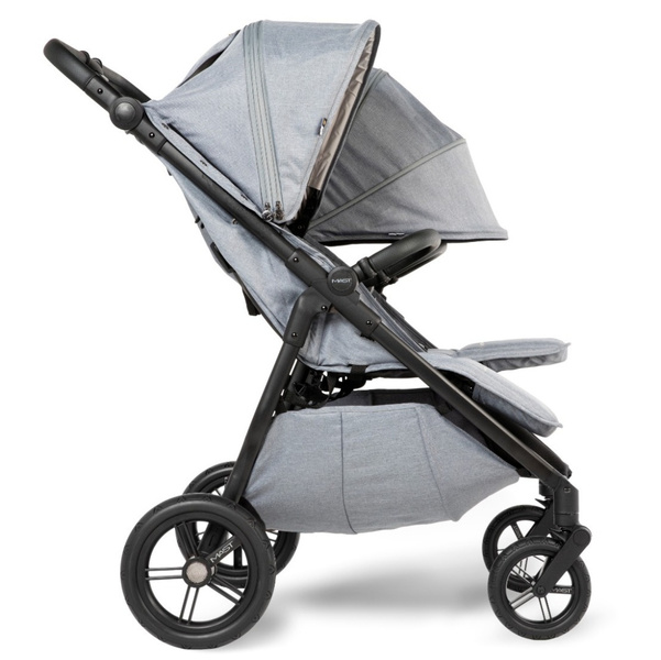- Regulowany podnóżek w czterech pozycjach oraz siedziska ustawiane w pozycji leżącej do 170° – idealne do drzemki podczas spaceru.