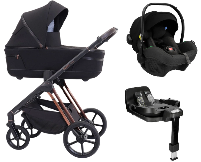 Wózek Miloo z dodatkowo płatnymi adapterami do fotelików samochodowych 0+, na zdjęciu z fotelikiem Espiro Pi