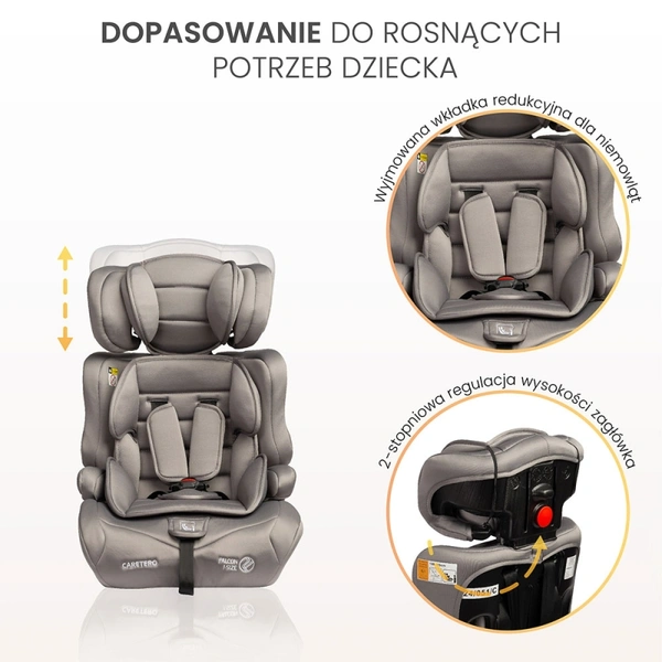 Regulowany zagłówek – 2-stopniowa regulacja pozwala dopasować fotelik do wzrostu dziecka.