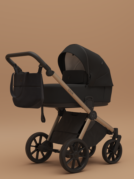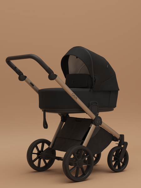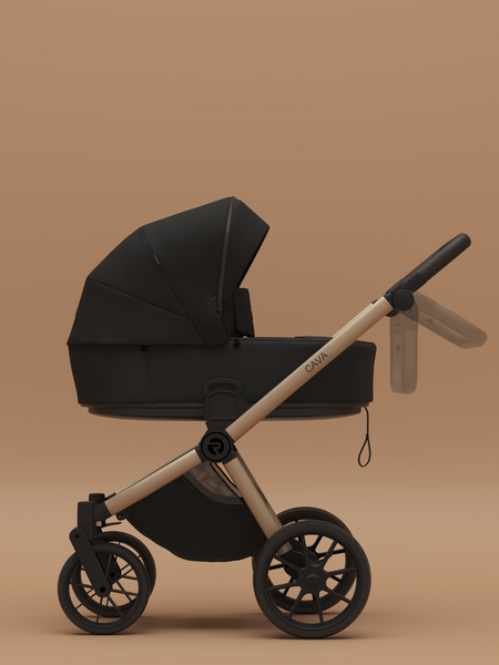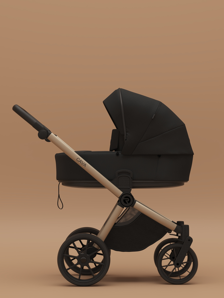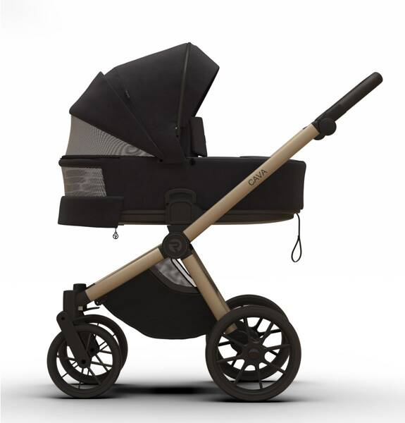 Gondola wózka dziecięcego CAVA posiada innowacyjną funkcję łatwego składania na płasko i ponownego napinania. Mechanizm składania znajduje się pod gondolą i obsługiwany jest jedną ręką. Wystarczy wcisnąć jeden przycisk. Ponowne napięcie gondoli również jest niezwykle proste i szybkie. Po prostu pociągnij za pasek w tylnej części gondoli.