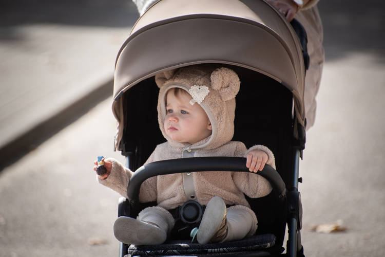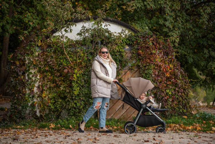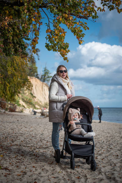Wyjątkowo obszerna budka po jej poszerzeniu zapewnia komfort zarówno podczas zimowych spacerów, zabezpieczając przed opadami, jak i podczas letnich, zabezpieczając przed nadmiernym słońcem.