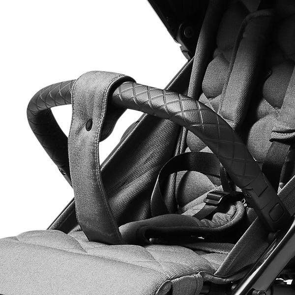Obszyta ręcznie wysokiej jakości skórą, regulowana rączka sprawia, że wózek prowadzi się komfortowo zarówno rodzicom o wysokim, jak i niższym wzroście.