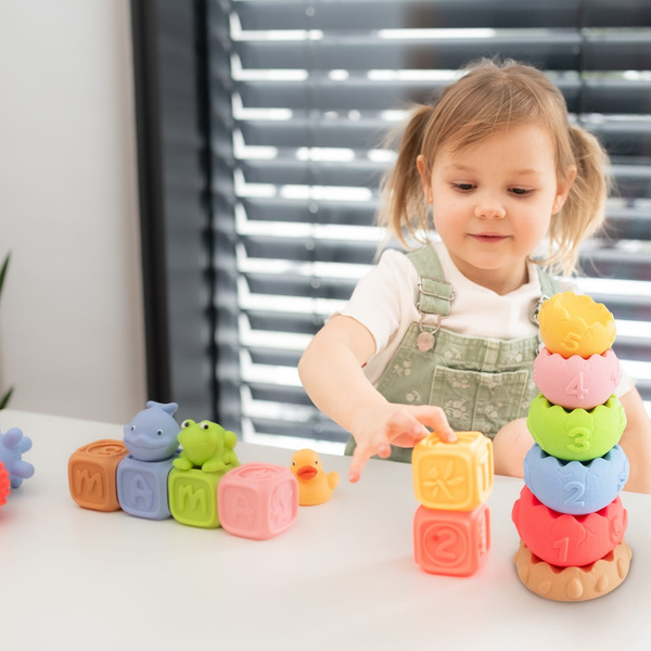 Odkryj świat kreatywnej zabawy z zestawem klocków sensorycznych i piramidy Montessori, który wspiera rozwój dziecka poprzez naukę i zabawę! Zestaw zawiera 18 elementów, w tym zwierzątka, piłeczki, klocki sensoryczne i piramidę sensoryczną z motywami liter, cyfr oraz zwierzątek, które pomagają maluchowi poznawać świat w sposób naturalny i angażujący. Dzięki różnorodnym kształtom i teksturom dziecko rozwija zdolności manualne, koordynację ręka-oko oraz zmysł dotyku.