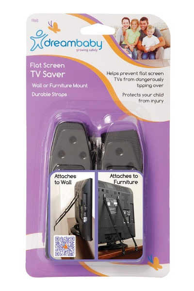 Taśmy stabilizujące do telewizorów z płaskim ekranem DreamBaby zabezpieczą przed przewróceniem telewizory