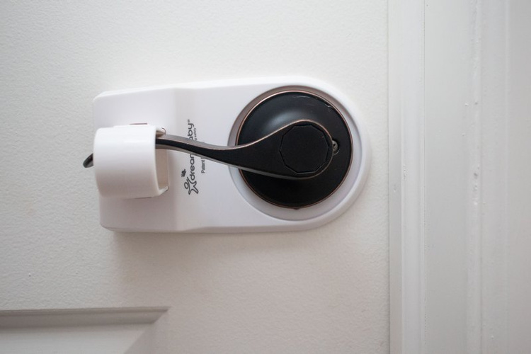Blokada klamki od Dreambaby® zapobiega przed dostępem dzieci do potencjalnie niebezpiecznych obszarów, takich jak pralnie, garaży i innych pomieszczeń. Blokady można użyć do większości klamek drzwiowych. Blokadę można włączyć / wyłączyć bez potrzeby użycia klucza.