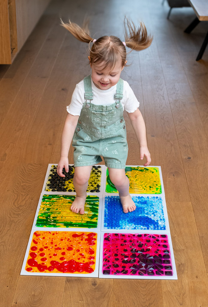 Fakturowe płytki sensoryczne z cieczą to połączenie zabawy, terapii i rozwoju – zaprojektowane z myślą o dzieciach potrzebujących wsparcia w obszarze integracji sensorycznej i motoryki.