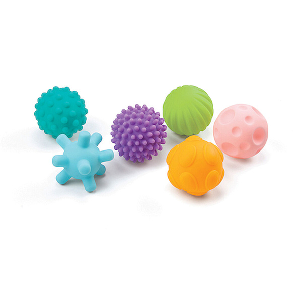 Miękkie piłeczki sensoryczne do zabawy dla maluszka. Dziecko chwytając piłki, odkrywa różne faktury.