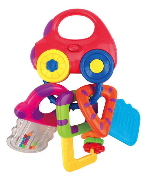 Klucze Brum Brum posiadają realistyczne dźwięki oraz 6 utworów muzycznych. Włącz przycisk, aby uruchomić silnik i włączyć światła! Zabawka wyposażona jest również w gryzak oraz łatwy do złapania przez dziecko uchwyt, dzięki czemu sprawdzi się idealnie dla ząbkujących maluszków i może posłużyć jako grzechotka.