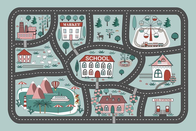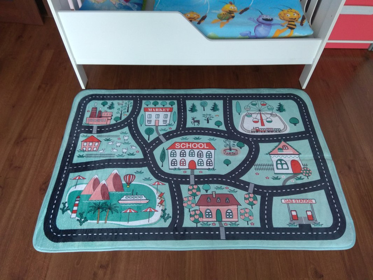 Na dywaniku można znaleźć m.in. szkołę, stację benzynową czy las.