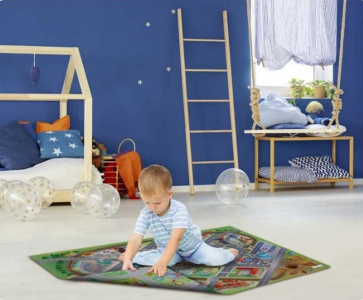 Dywanik dla dzieci, które lubią bawić się samochodzikami.