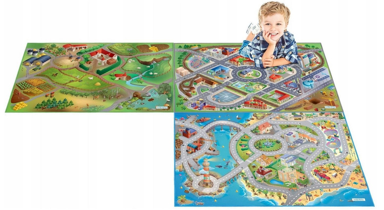 Zachwycająca grafika i wyraziste kolory sprawiają, że mata szybko stanie się ulubionym miejscem zabawy i odpoczynku każdego dziecka.