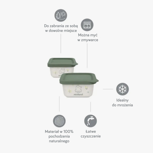 Pojemniki doskonale nadają się do przechowywania jedzenia dla dzieci i niemowląt. Są łatwe do czyszczenia. Można je umyć w zmywarce, bez obawy o to, że stracą swój kolor.