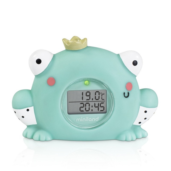 Termometr pozwala rodzicom w każdej chwili łatwo kontrolować zarówno temperaturę wody w wannie jak i temperaturę w pomieszczeniu, ponieważ termometr stale je mierzy, pokazując na ekranie wszelkie zachodzące zmiany.
