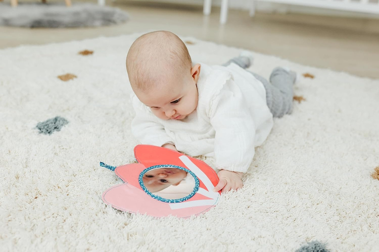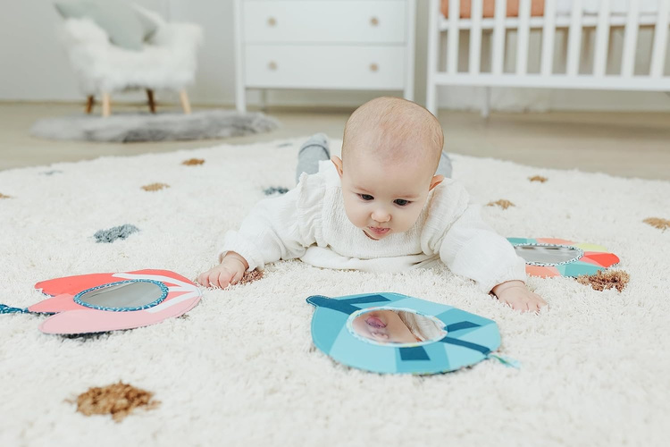 Lusterko z kolekcji Feel to Learn dla dzieci od 6 miesiąca życia to niezwykła zabawka, która angażuje zmysły malucha już od pierwszych miesięcy życia. To czas intensywnego odkrywania świata. Dzięki kontrastowym kolorom i różnorodnym teksturom, stymuluje rozwój wzroku, słuchu i dotyku.