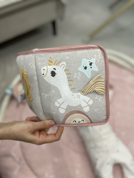 Niezwykle miękka książeczka, która angażuje dziecko i wspiera rozwój malucha. Rozwojowa zabawka dla małych podróżników!