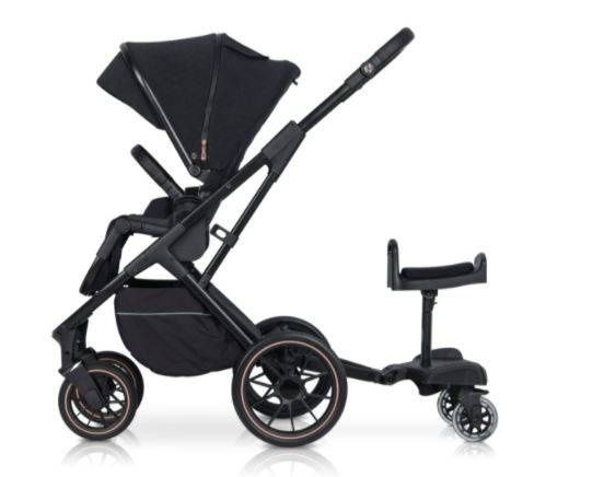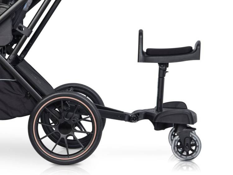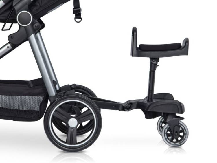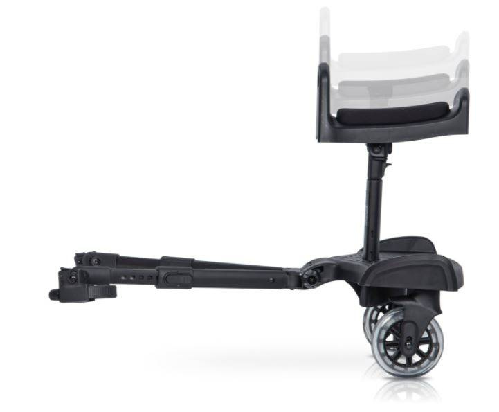 Dzięki niej komfortowo przetransportujesz swoje starsze dziecko, które nie korzysta już z wózka dziecięcego. Dostawka Colibro może być stosowana jako sama platforma dla stojącego dziecka lub jako platforma z siedziskiem, która pozwala przetransportować dziecko w pozycji siedzącej.